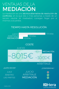 En la mediación, en cambio, se paga por sesión, conociéndose el coste antes de empezar el proceso, siendo este mucho más económico que las otras alternativas, situándose sobre los 1.000€ todo el proceso.
